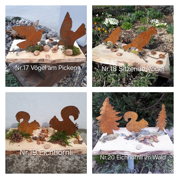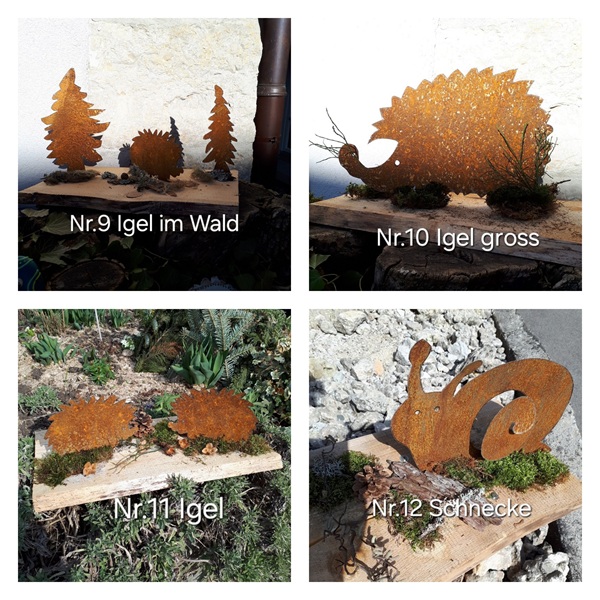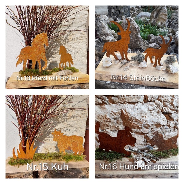 Herzlich Willkommen auf unserer Homepage. Es freut uns, wenn Sie sich ein paar Minuten Zeit nehmen für unsere handgefertigten "Blech Unikate und Und Mehr" - Produkte. Alle Blechfiguren schneiden wir von Hand aus und verzieren sie liebevoll.
